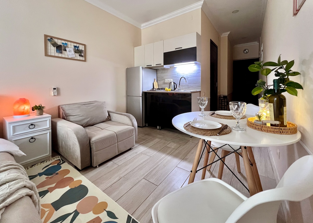 Charming two-room apartment in the heart of historic Batumi, just a 5-minute walk from the beach, seaside boulevard, and the main entrance of 6 May Park. Thoughtfully designed for comfort and relaxation, it’s ideal for couples 3 guests or solo travelers. Walk to Old Batumi’s main sights, stylish bars, cozy cafés, restaurants, boutiques, and local food markets. A perfect base to enjoy the city’s authentic charm and vibrant atmosphere.