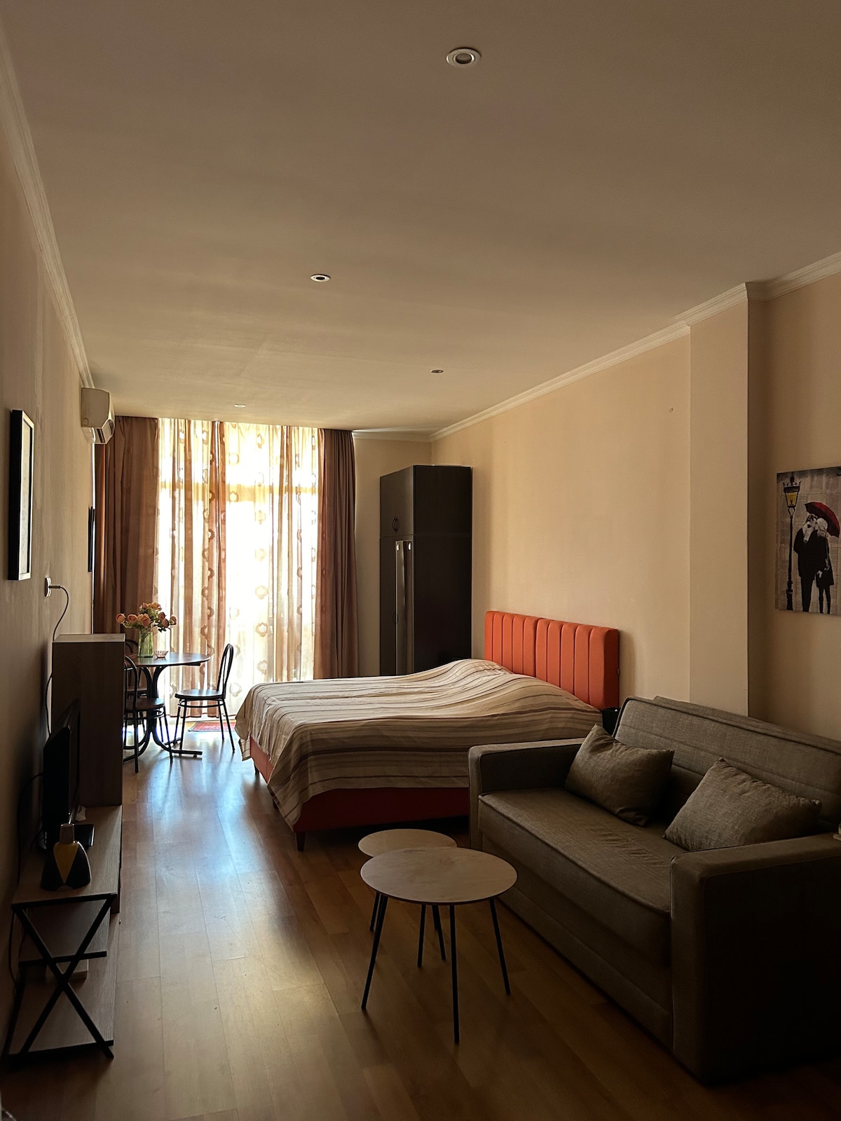 Charming 1 bedroom & bathroom in the heart of historical Batumi, 5 min walk from beach and boulvard. The flat is located in front of central entrance of 6 May park. The unit includes a refrigerator, air conditioner, washing machine, iron and hair drier. Free street parking. You can easily visit by walk the sights of historical city, restourants, boutiques and local food markets. The host is open to answer all your questions in English/Russian/Turkish languages.