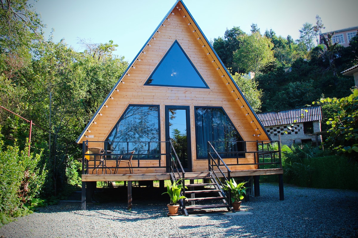 "A-Frame Rest-Art" offers A Wood Cottage on the top of City Batumi, from where you can see an incredible panorama view of a City, sea, and mountains. The cottage with its private yard that creates an environment for ideal relaxation. The cottage itself is equipped with creative and modern appliances and necessary utensils. The cottage can accommodate a maximum of four people, with a queen bed and sofa bed.
