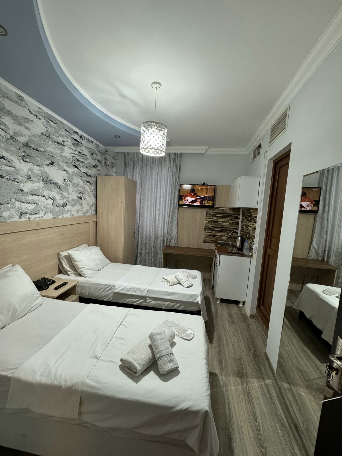 Apart-hotel is located in the central part of the city, in a cozy and quiet place. All necessary conditions are provided. If necessary, it is possible to combine rooms, as well as add a place for a bed. The rooms are studio type with individual kitchens equipped with the necessary inventory.