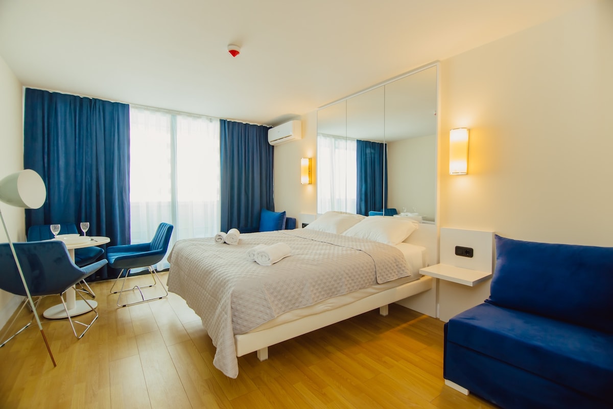 Добро пожаловать в White Villas! Насладитесь уютной студией в 20 кв.м с бассейном, садом и паркингом. Студия оборудована всем необходимым для комфортного отдыха: кондиционером, холодильником, двумя односпальными кроватями и плотными шторами, создающими уют и защищающими от солнечных лучей. Собственная туалетная комната обеспечивает полную приватность. Окунитесь в роскошь нашего комплекса, где каждый уголок создан для вашего комфорта. Забронируйте свою идеальную студию