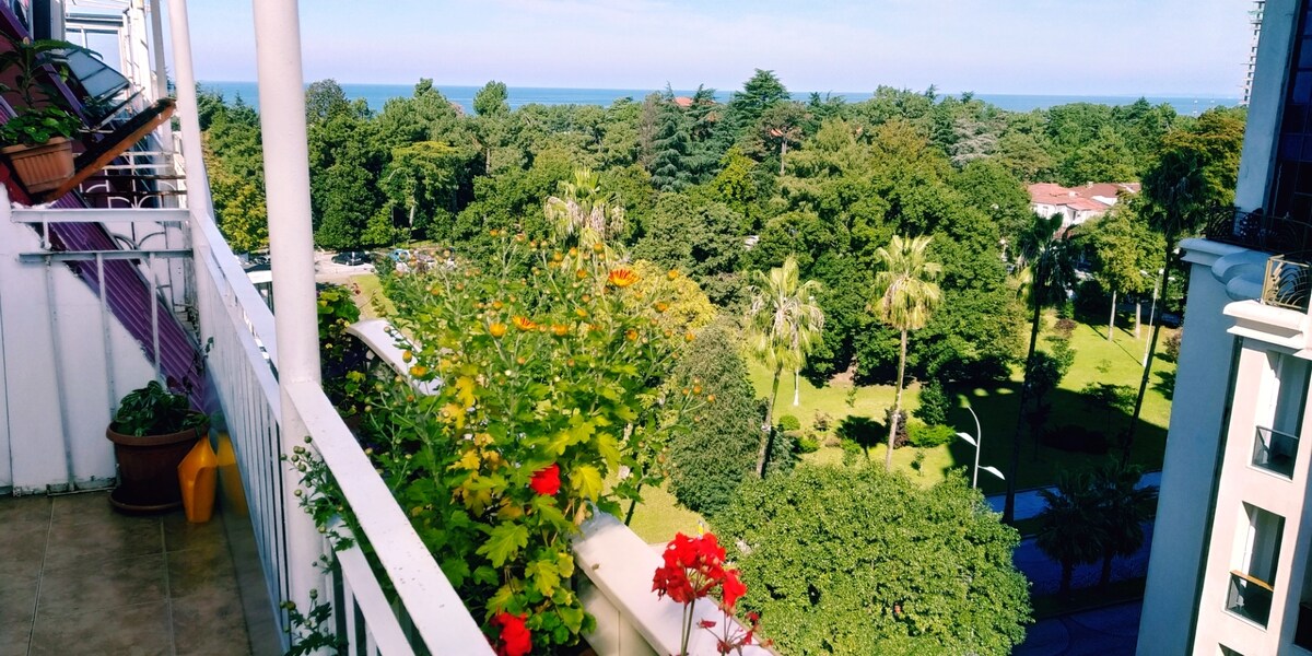 Наша квартира расположена в новом 12этажном доме на 11 этаже с большой верандой и потрясающим видом на море и горы.В доме есть два лифта, бесплатная парковка во дворе.Вся инфраструктура,включая рестораны,супермаркеты,аптеки,автобусная остановка находятся у дома.Так же рядом есть торговые овощные ряды, где каждый день вы можете приобрести свежий грузинский сыр,ароматные специи, сезонные овощи и фрукты.В 6-8 минутах пешком есть канатная дорога,а до бульвара,прибрежной зоны и пляжа 10-15 минут хода