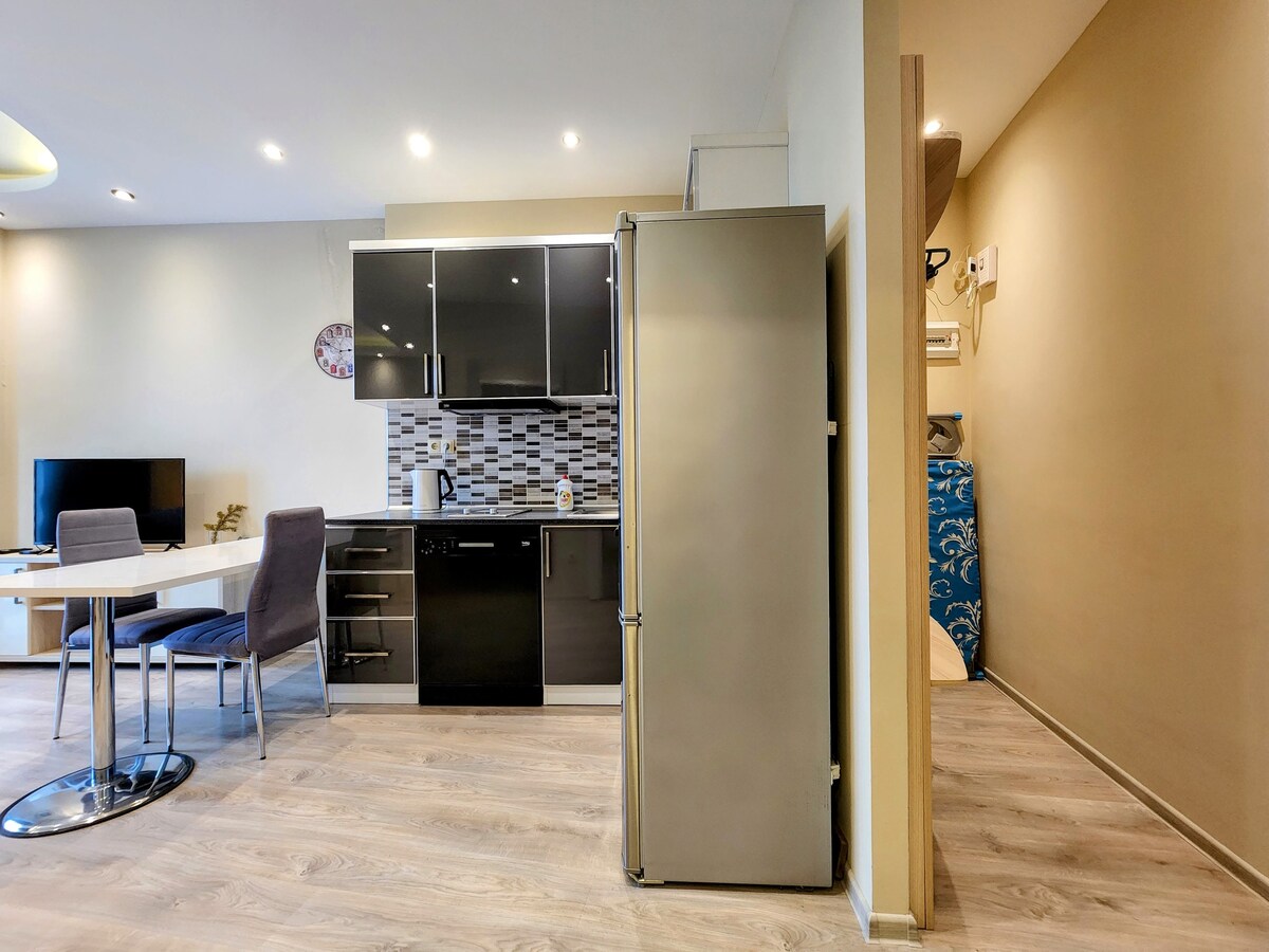 Cozy 50 m apartment with two bedrooms, on the seashore for 2-5 people, equipped with all necessary appliances, with a cozy balcony. There is a workplace and a cozy corner for romantic evenings.Lying on the bed, you can enjoy a beautiful view of the sea . In 5 minutes walk there is a supermarket two chain, two chain pharmacies, and three banks. A 10-minute walk from the central market, where you can buy the freshest vegetables, fruits and there are also shops where all this is more cheaper.