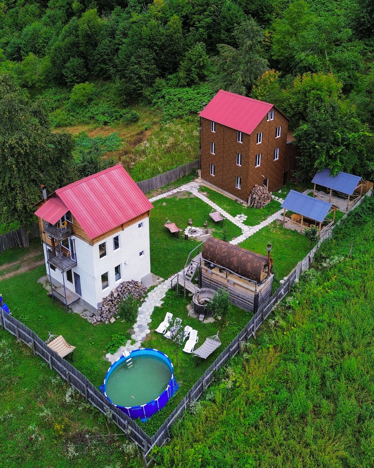 Cozy A-frame cabins in the mountains of Gomarduli — a perfect escape into nature. Each cabin sleeps up to 4 guests and includes a kitchen, shower, Wi-Fi, wood stove heating, and a terrace with stunning views. Surrounded by forest and fresh air, it’s ideal for families, couples, or anyone seeking peace and quiet.