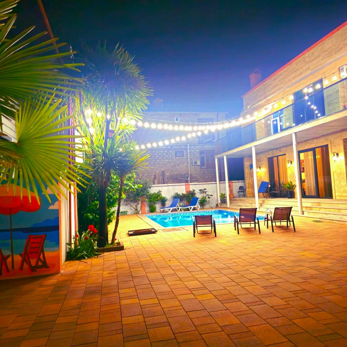 🌴🌴🌴🏊🏊🏊👙👙👙The pool is open all year round. The pool water is heated, even in the coldest time, to 26-30 degrees. A house with comfortable accommodation for 8 people. The house is located 15 minutes away from the center of Batumi and has a beautiful sea view. Inside the house, you will find: ✅A well-equipped kitchen ✅Three bedrooms and three bathrooms. ✅A TV, a washing machine, air conditioning in each bedroom, and a heating system.