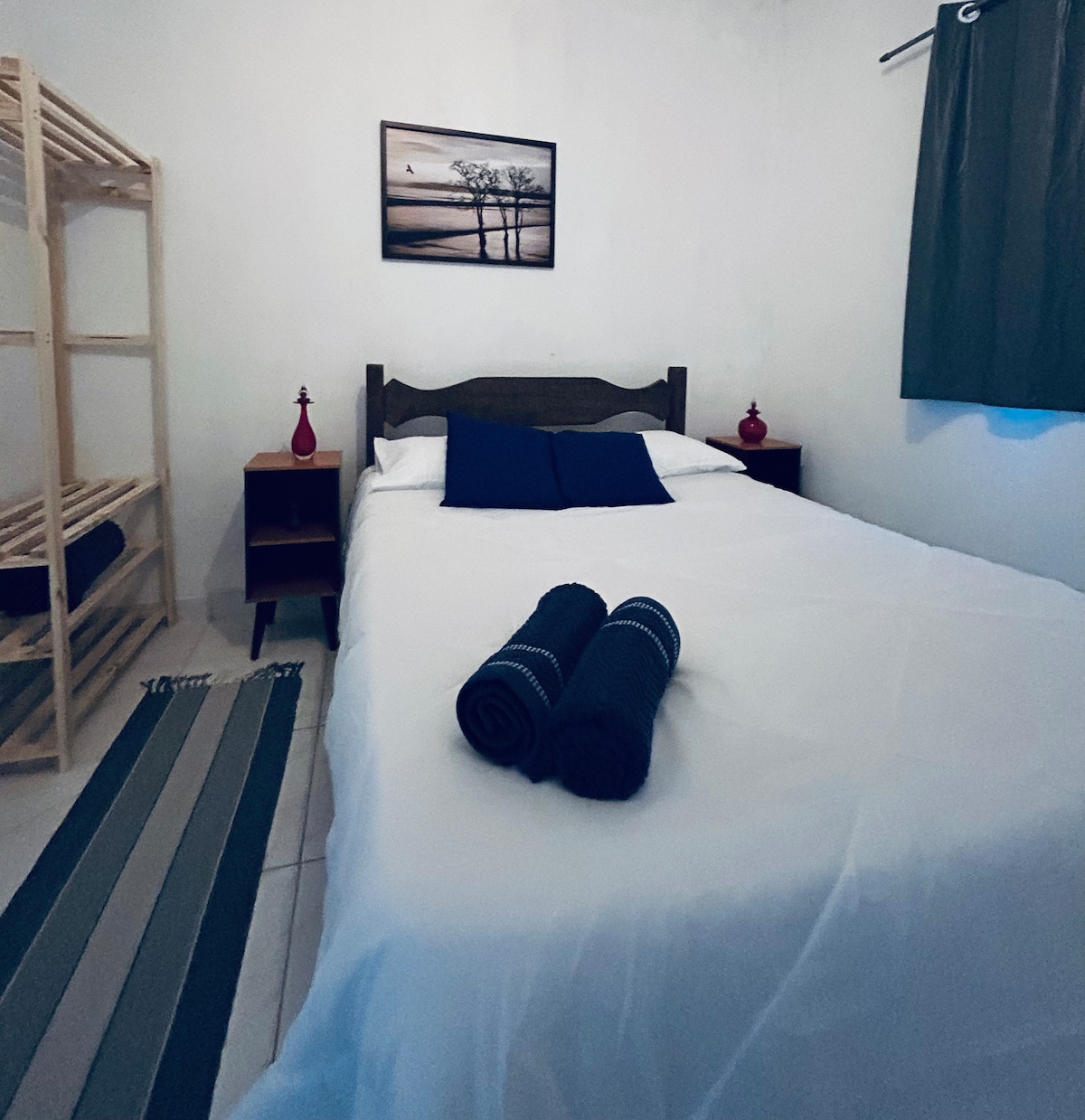 Relaxe neste espaço aconchegante e funcional, ideal para quem busca conforto com estilo. Nossa kitnet compacta oferece duas camas de solteiro no estilo bicama, garantindo uma boa noite de descanso. O ambiente conta com Ar Condicionado, proporcionando ainda mais conforto. A cozinha está equipada com itens essenciais para preparar seu café da manhã e refeições rápidas, como frigobar, micro-ondas e cooktop. O banheiro é espaçoso e moderno, com sistema de aquecimento de água para seu bem-estar.