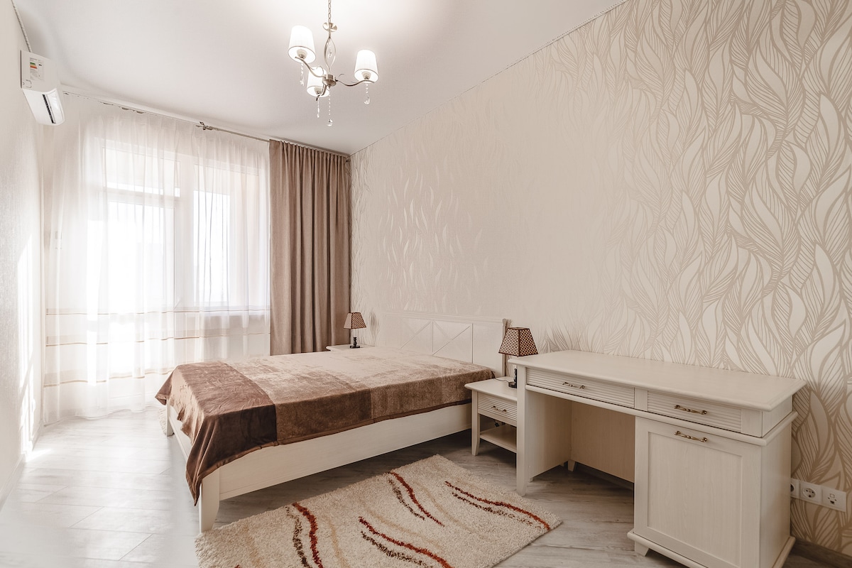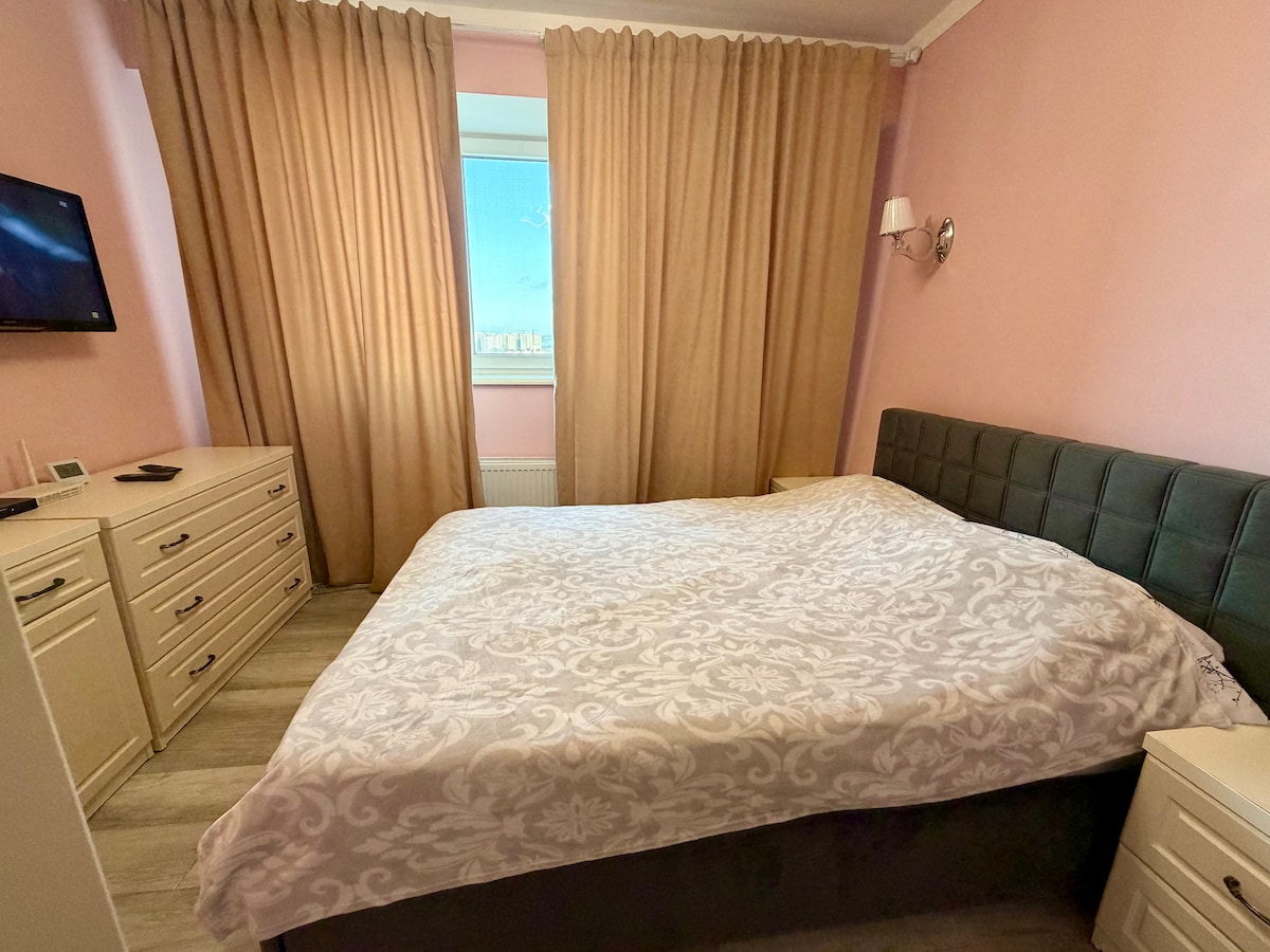New luxury apartment in a new and quiet residential area, in the City Center with unique panorama.The apartment is comfortable and spacious, 70 m2, separate bed rooms, hall, kitchen, and bathroom with a large bathtub.The apartment has a special design with high quality furniture and household appliances. Area with developed infrastructure! In the immediate vicinity you will find: shopping and social centers, shops, pharmacies, restaurants, green area, fitness center, access to public transport