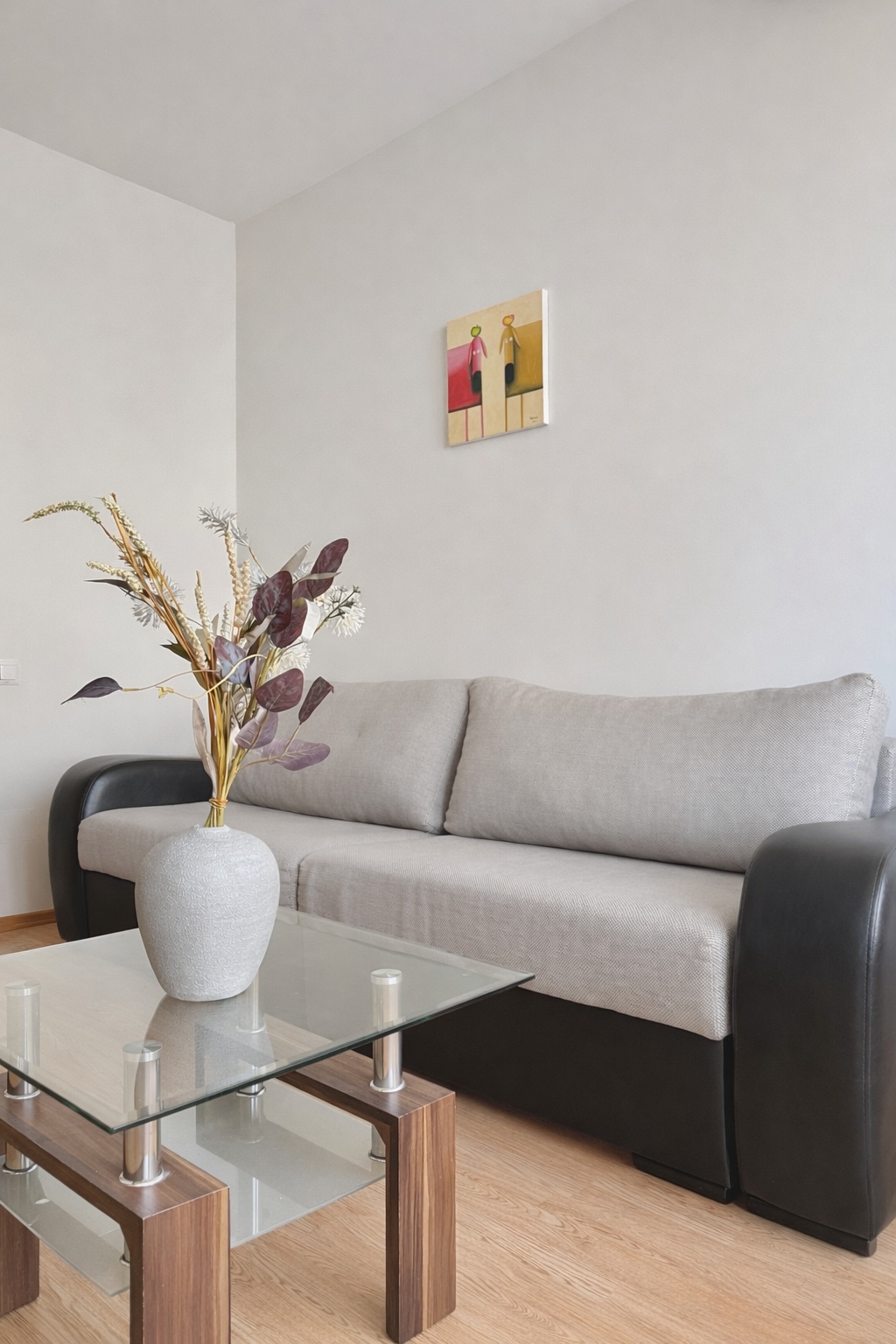 Welcome to our charming one-bedroom apartment nestled in the heart of the city! Perfectly situated within walking distance to the main city square and well-connected to public transport routes, our quiet and peaceful neighborhood offers a relaxing retreat from the hustle and bustle of the city center.