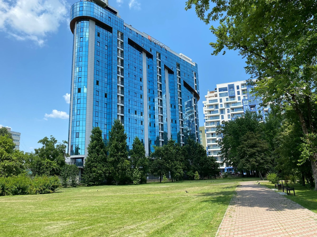 Уютная квартира в центре города Кишинёв, расположена у озера.Современный интерьер, прекрасный вид из окна и всё необходимое для Вашего комфорта и удобства, сделают ваше прибывание идеальным. В распоряжении гостей: 1 спальня с кроватью 2*2м.(KingSizeBed),1 спальня с диван-кроватью 140*200 , прихожая, оборудованная кухня, раздельный санузел, балкон с уютной террасной мебелью. -Встречаем гостей с аэропорта за отдельную плату (25 евро)