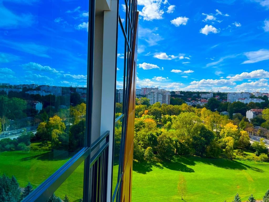 Luxurious studio apartment in the heart of Chisinau's city center! Enjoy breathtaking views of the largest Dendrarium park from this premium-class residence. The apartment features a spacious bedroom with an integrated bath and huge mirrors. A projector is available for movie nights, and the separate living area ensures comfort. The cozy bedroom boasts a comfortable sofa, and the functional kitchen includes a wine fridge. Free Wi-Fi and parking complete this perfect stay!