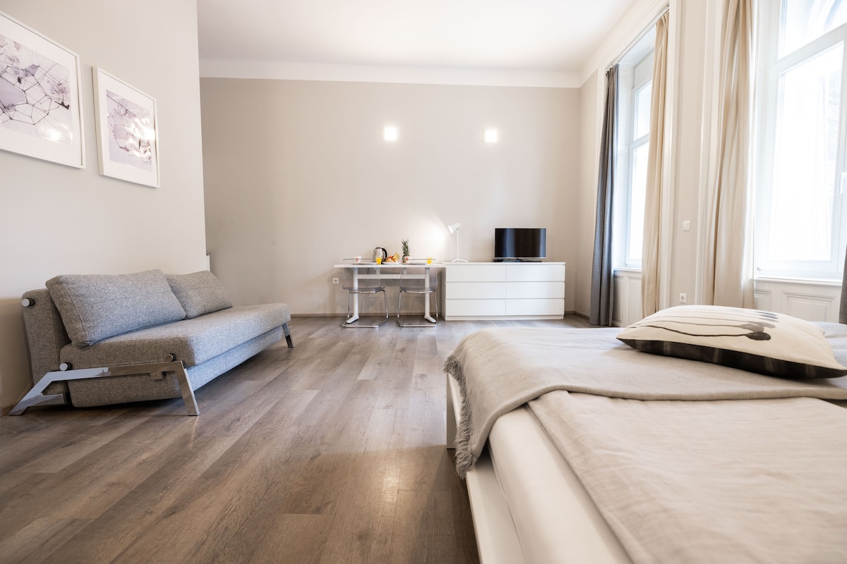 Welcome to our modern and chic studio nestled in the vibrant heart of Maribor, Slovenia. It's strategically located in the bustling pedestrian zone, yet offers a peaceful sanctuary with a west orientation, providing a quiet ambiance. Perfectly situated in the main square, surrounded by restaurants, stores, and all the conveniences you desire. Only 5 minutes from the main Bus and Rail Station, making it easily accessible for all travelers.