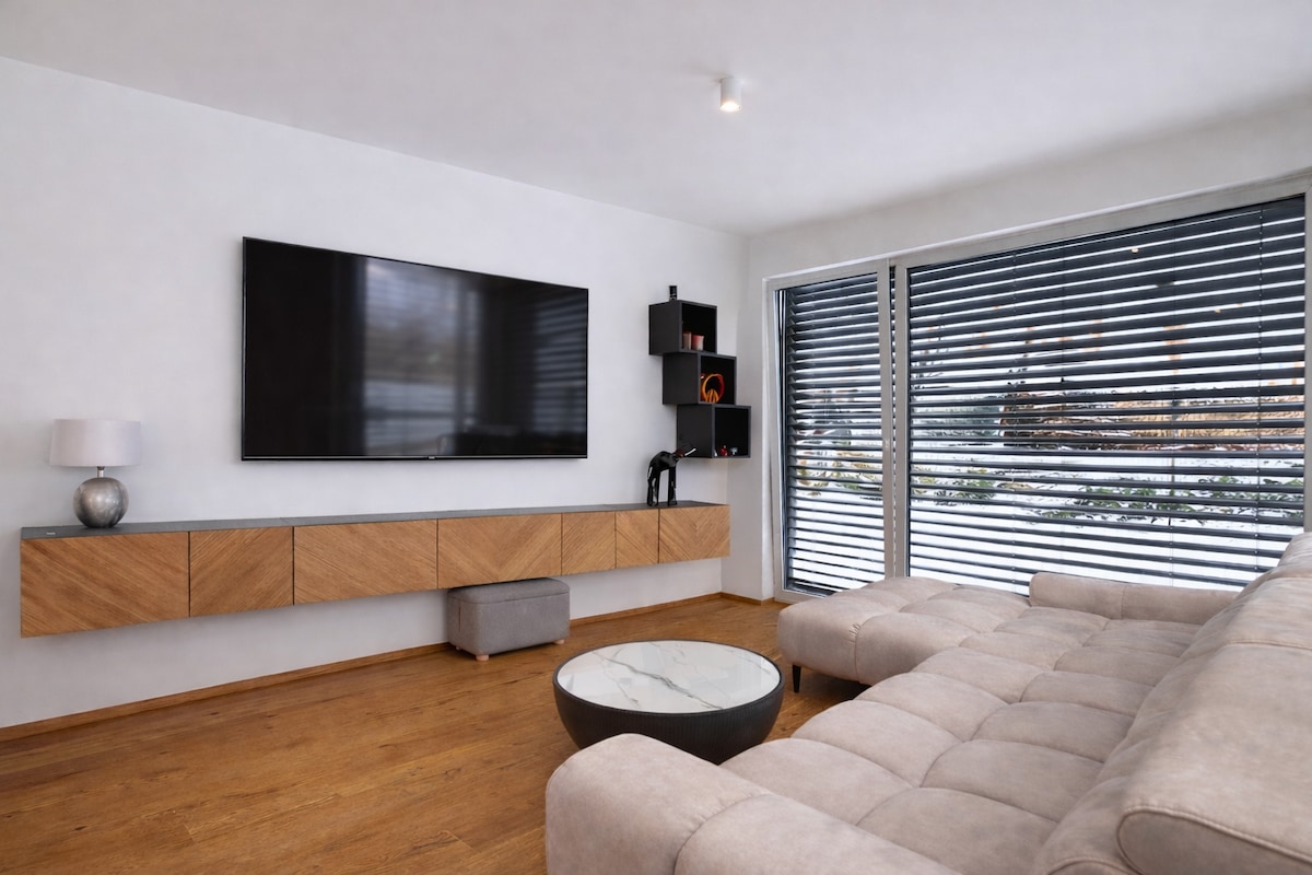 ✨ Dobrodošli v sodobno zasnovanem apartmaju z dvema ločenima spalnicama, elegantno dnevnim prostorom in popolnoma opremljeno kuhinjo. 🪟 Svetli prostori, prostorna terasa ali balkon in brezhibna čistoča poskrbijo za sproščujoče bivanje v mirni soseski Maribora. 📍 Lokacija nudi hiter dostop do centra mesta, reke Drave in glavnih znamenitosti. 🖼️ Udobna dnevna soba z naravno svetlobo