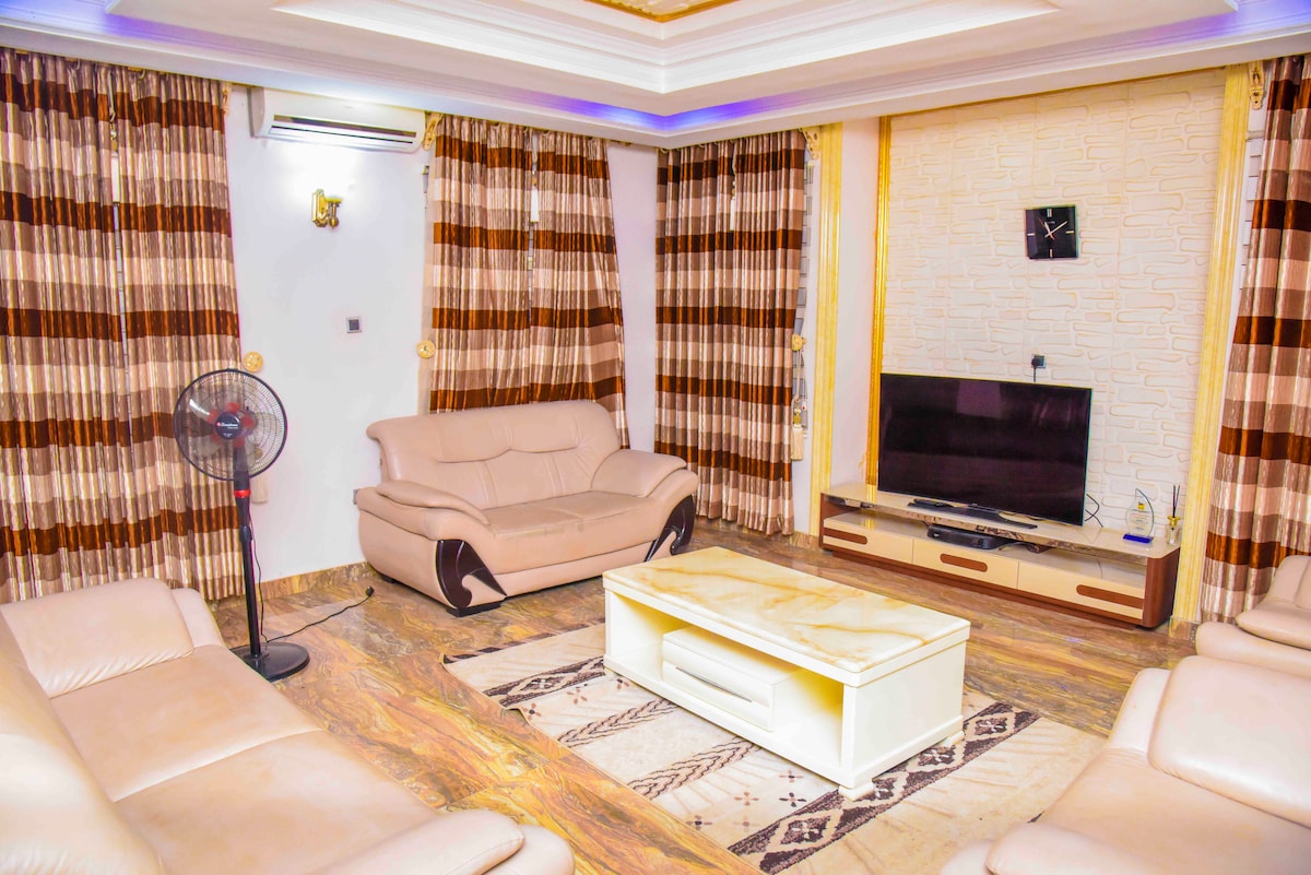 Experience a perfect blend of nature, style, and comfort at this centrally located cosy 3-bedroom apartment with an indoor garden, fully equipped kitchen, private chef/ meal on demand, Netflix/Dstv, Alternative power supply, errand dispatch, and air Conditioning.