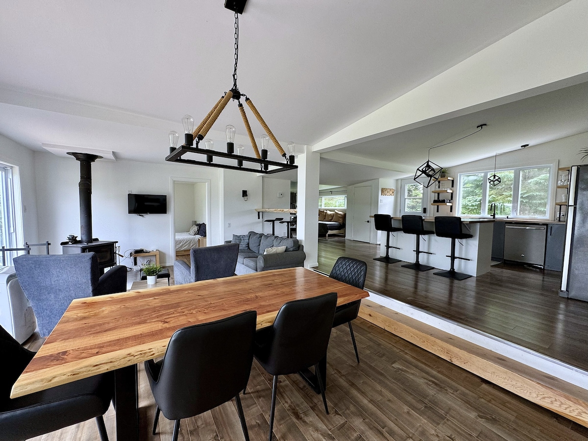 Chalet chaleureux à proximité de services et de loisirs diversifiés avec spa intime. Accès à une plage privée à pied ou une plage public à quelques minutes de voiture. Descente à bateau via la plage privée. Sentiers pédestres accessibles à pied autant l’hiver que l’été. L’Astrolab et les sentiers du mont Mégantic sont à 20 min de voiture. Nous sommes directement sur la route des sommets qui est un incontournable pour les cyclistes. Un endroit rêvé pour profiter du calme de la région!