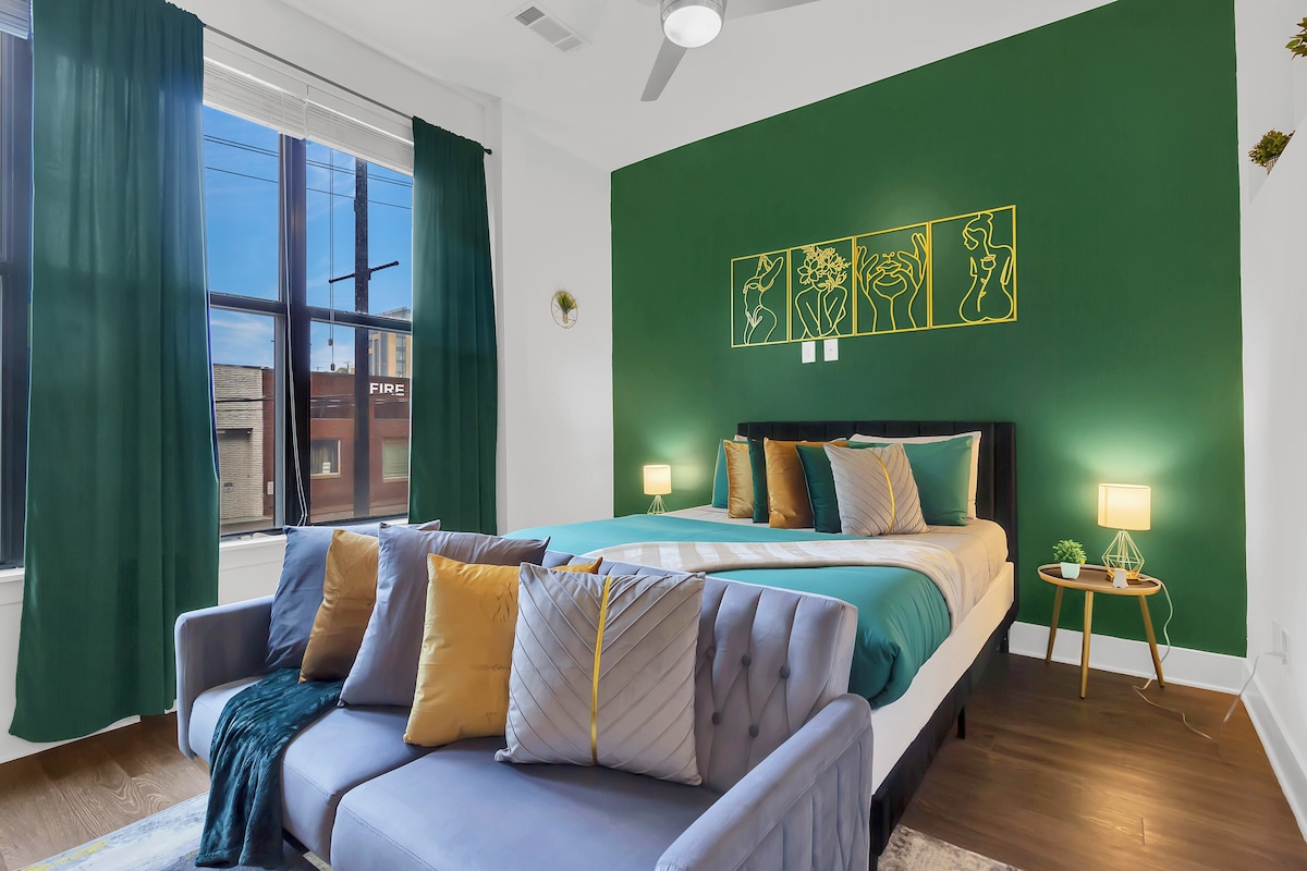 ★"I have stayed at numerous Airbnbs and Abby was the most responsive and friendliest host I’ve ever had!" ~Penthouse w/breathtaking city views ~Prime location in the heart of Downtown Nashville ~Perfect for special occasions or small groups (sleeps 4) ~Secure, reserved parking* ($25 nightly) ~Rooftop pool ~Lux workspaces+lounges ~Modern fitness center, yoga, & cycling studio ~Fully equipped/stocked kitchen 1 min→Music City Convention Center 5 mins→Broadway+Ryman 10 min→Nashville Airport/BNA ✈