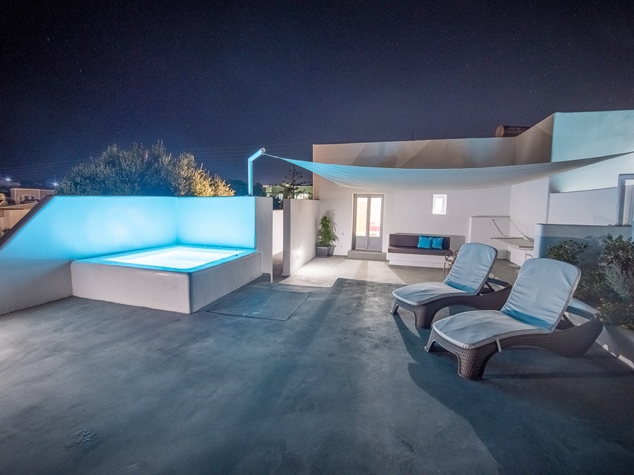 Junior Caldera Sea & Sunset View is located on the TOP of the caldera rim at Imerovigli overlooking the ocean (Aegean Sea), the well-known Caldera, the Volcano, the other nearby Cycladic Islands and the famous Sunset. This listing has a private and spacious for 2 people outdoor Jacuzzi/mini pool/ hot jet tub and cannot accommodate kids under 4 years old.