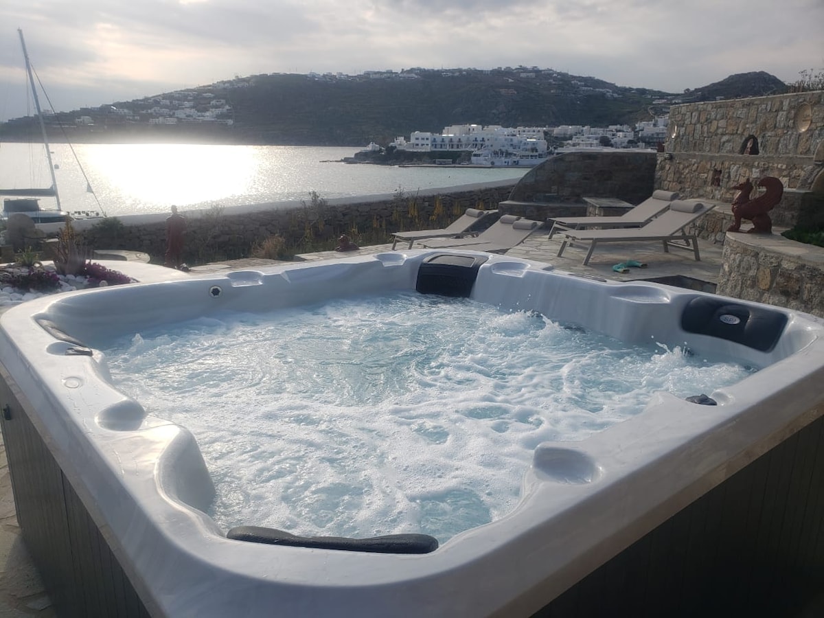 It's a traditional cycladic house of 60 square meters with a kitchen, bathroom, 2 couches and a big kig size bed that can be converted in 2 single beds. The house has private access and a private balcony with a dining table. there is a direct access to the hidden beach and a shared Aloe Terrace and Jacuzzi with another couple of guests of the property. We also have other 2 properties for 2 people. One with a private jacuzzi ask me for the link if interested.