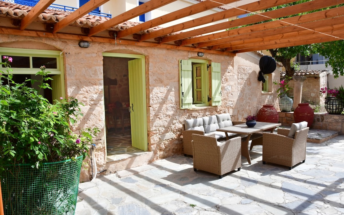 Welcome to our beautifully renovated, historic two-story artist’s house offers a perfect blend of charm and comfort. It features two cozy bedrooms, air conditioning, a brand-new bathroom with a shower, and a modern kitchen with handmade details. A wooden staircase leads to a lovely living room with balconies overlooking green pine hills and the sea. Enjoy a spacious terrace with a traditional pergola, outdoor dining, and a serene courtyard with lemon and orange trees, and a unique outdoor shower