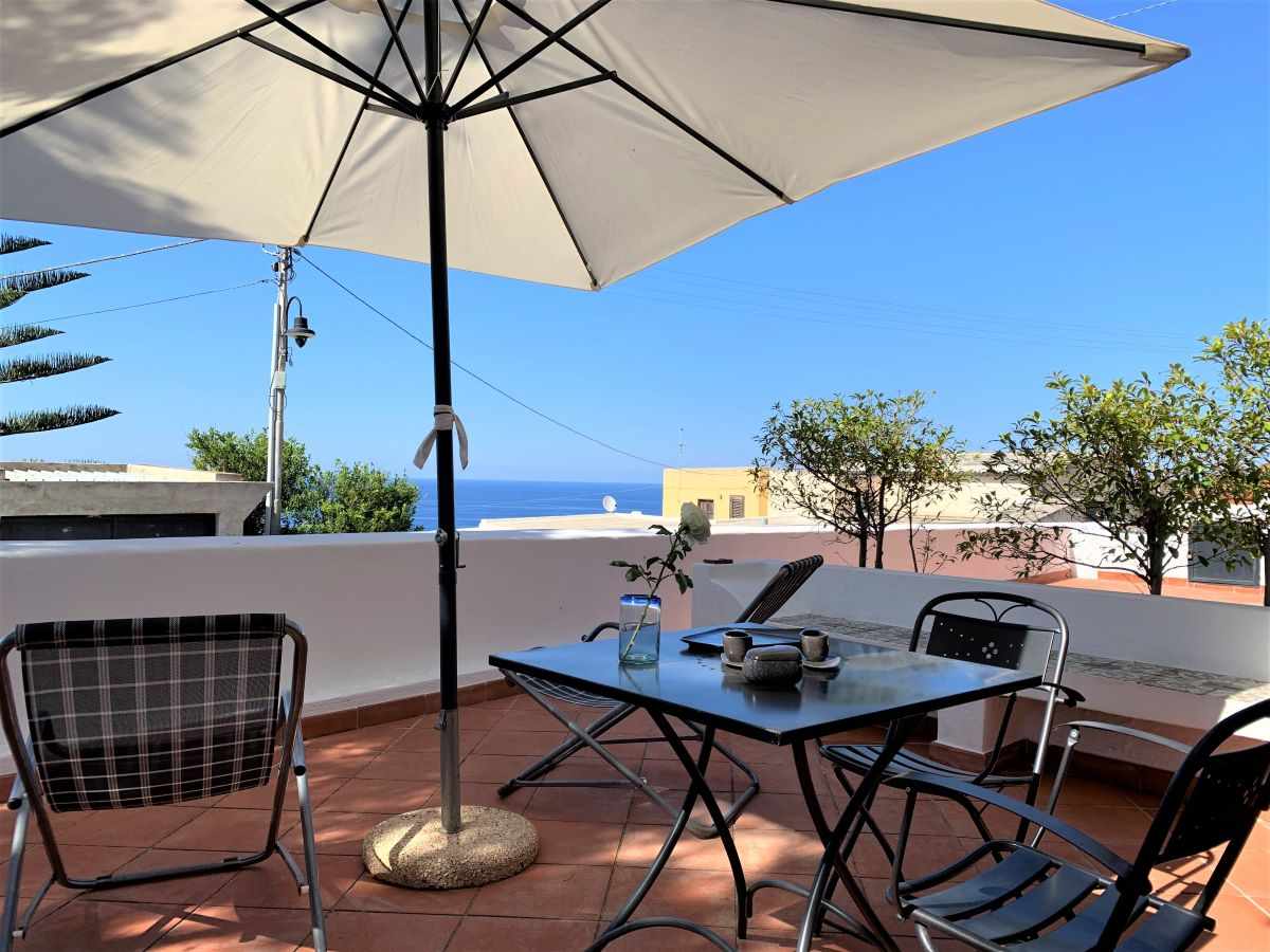 L appartamento facente parte della casa dove vive la sola proprietaria composto da una grande camera con un letto matrimoniale divisibile,aria condizionata, un antibagno, un bagno completo con una doccia, una cucina attrezzata di tutto il necessario, divano e. televisione. Inoltre un grande terrazzo a picco sul mare con una parte coperta per pranzo e relax ed una meravigliosa vista su panarea e stromboli Una scala privata porta alla bellissima baietta sottostante con un mare meraviglioso.