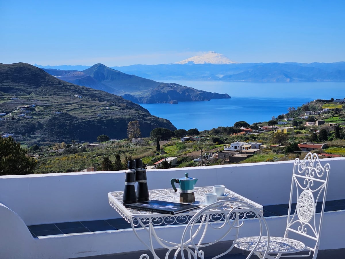 西西里岛别墅,配有按摩浴缸,可欣赏爱奥利亚群岛的美景