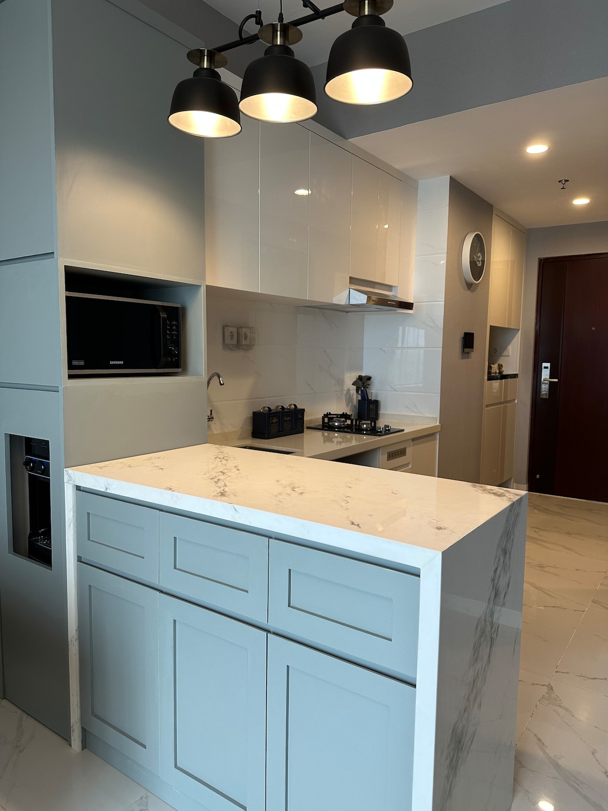 Nikmati pengalaman bergaya di tempat yang berlokasi di pusat dekat Fasilitas Hiburan & perbelanjaan & tempat rekreasi Fasilitas Kamar - 1 king bed - Wifi + Netflix - Water heater - Kulkas - Dispenser - AC - TV - Meja Rias - Hair dryer - Setrika - Dapur & Alat masak Fasilitas Gedung - Kolam Renang - Tempat Gym - Cafetaria - Mini Market * Indomaret * Cirkel K 24 jam - Tempat parkir (Berbayar) - Tempat Laundry Hiburan dan perbelanjaan - Aeon Mall - ice bsd - The breeze bsd - Q big Mall