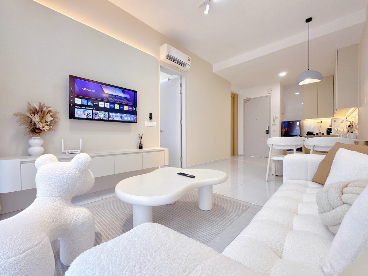 Welcome to our cozy and muji style 1+1Bedroom 4pax homestay !! Our homestay located in the heart of Bukit Indah. Whether you're here for business or leisure, our space is designed to provide you with comfort and convenience. ❤️ Our unit is conveniently located near Aeon Bukit Indah, Legoland or JB town. There's plenty of restaurants, cafes and massage center, cinema, entertainment and etc in the neighborhood. Walking distance also can go aeon bukit indah and lotus supermarket 🚶🏻🛍️