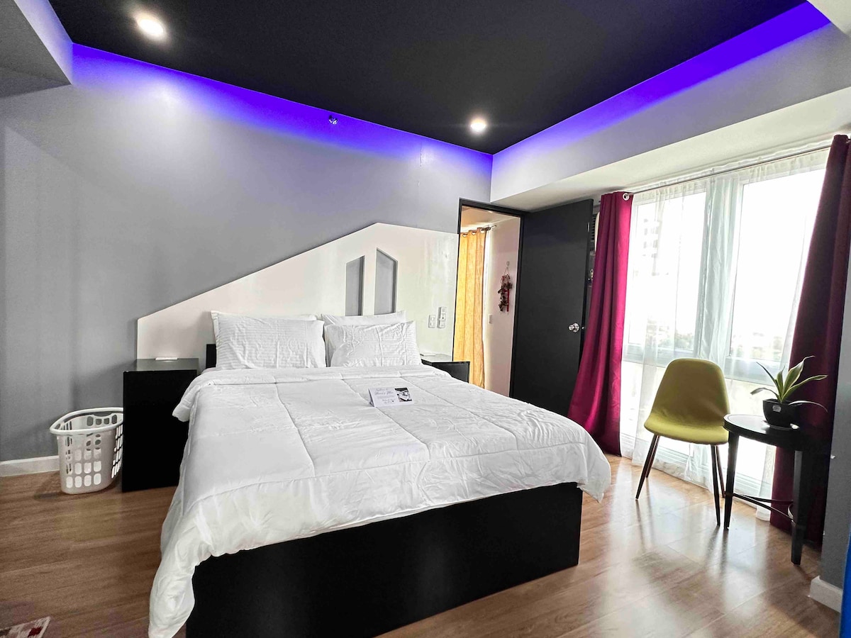 Like in a hotel, your family can relax at this centrally-located condo: -across a Ayala Mall (cinema, supermarket, department stores, cafes, Anytime Fitness Gym) -1 minute walk near city's main highway. -17th floor -2 actual Queen Size Beds (extra mattress available upon request, 2 days in advance) - DSL wifi -Kitchen -Washing machine -Self Check-in with Digital Lock - Pay parking Available. - Swim Pool Access (P150/person) (No Pool on Mondays) -Check-in: 2PM. - Check-out: 10:00AM.