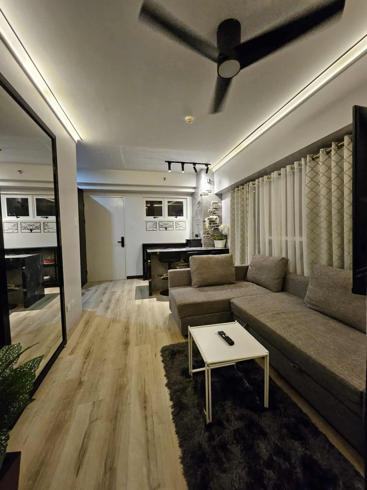 Your comfort matters at Casa G. This rustic-modern 1BR fits 5–7 guests, perfect for couples or groups. Enjoy a spacious layout with balcony, double bed + sofa bed, 55” Smart TV, GFiber WiFi, fully equipped kitchen (microwave, air fryer, induction cooker), espresso & matcha bar, hot/cold shower, dining for 4, aircon, toiletries, linens, games, and unlimited coffee, matcha, milk & tea. Note: Pool is still under construction (opens May or June 2026).