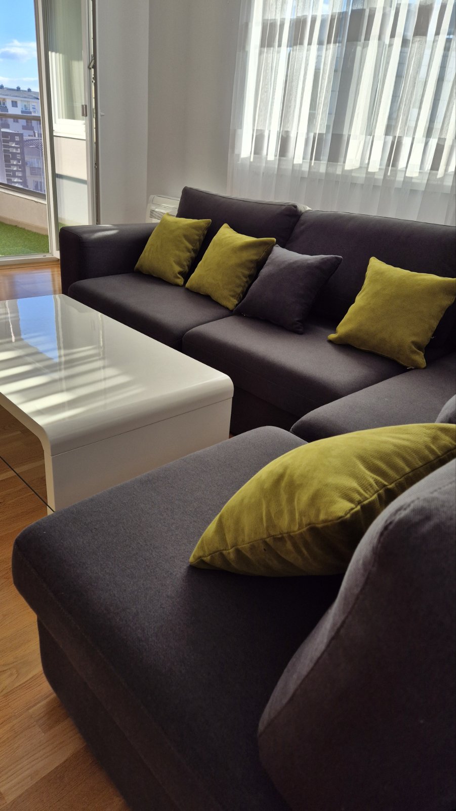 Urban Retreat with a Stunning Private Terrace Welcome to your chic getaway, perfectly located just behind UniverzalnaSala.Inside, you will find stylish living space with sleek black decor. The highlight? A massive 55m² private terrace, transformed into a serene outdoor lounge with bean bag seating, greenery, and magical night lighting ideal for relaxing under the stars. Whether for business or leisure, this apartment offers a unique blend of energy, comfort, and privacy in the heart of the city.