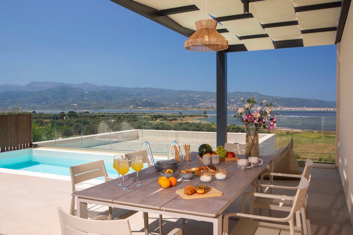 Newly built villas only 6 minutes from Lefkada city. Luxury with sea and sunset view in a quiet village! Ampolia Villas is a newly established luxury complex by the view of Lefkadas city the sunset and the magic colors of Ionian Sea. It is 6 minutes far way from Lefkadas capital city and 15 minutes from Aktio Airport. Ou philosophy is to let you have a "happy living"! We are ready to make you live beyond the ordinary!