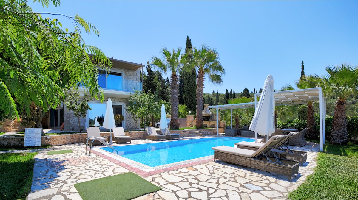 Νεόκτιστη βίλλα στους πρόποδες του βουνού Αίνος με ιδιωτικό πάρκινγκ.Εξωτερικοί χώροι για να απολαύσετε την θέα του βουνού με πισίνα, μπάρμπεκιου, τραπεζαρία και υπαίθριο κιόσκι.Σε κτήμα 4,5 στρεμμάτων με αμπέλι,ελιές, κυπαρίσσια και λουλούδια το οποίο περιβάλλεται από αγνό φυσικό περιβάλλον.Ιδανικός χώρος για ζευγάρια και παρέες που επιζήτουν ιδιωτικότητα και χαλάρωση, κατάλληλη για όσους εργάζονται με τηλεεργασία.Κοντά στην Σκάλα,τη Σάμη,την Αγία Ευθυμία,την παραλία Αντίσαμο και τα Σπήλαια.
