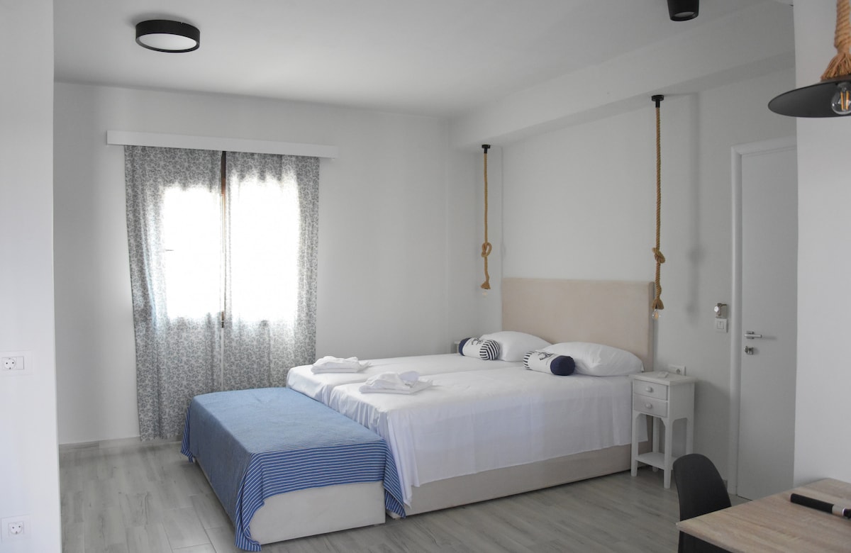All apartments have spacious feeling and plenty of light, large bathroom, well-equipped kitchen, comfortable double beds with anatomic mattress. All apartments' rooms are fully air-conditioned, and roof ventilators in bedrooms. The design combines natural materials, light colors with a "Greek touch". The backyard is for all of our guests. Huge free parking area is 150m away. Enjoy wondering in the beautiful little alleys, taste local delicacies and more. Welcome to feel home at Eriel!