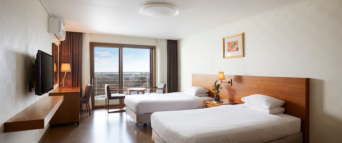 西归浦市,济州航空太空酒店,标准双人间#三邦山,绿色绿茶田全景