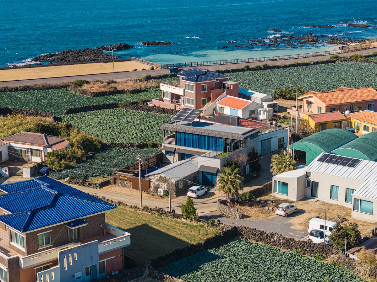 济州布莱顿/马拉多,Osulloc附近-60坪私人独栋别墅(日落海景、海豚点、烧烤)