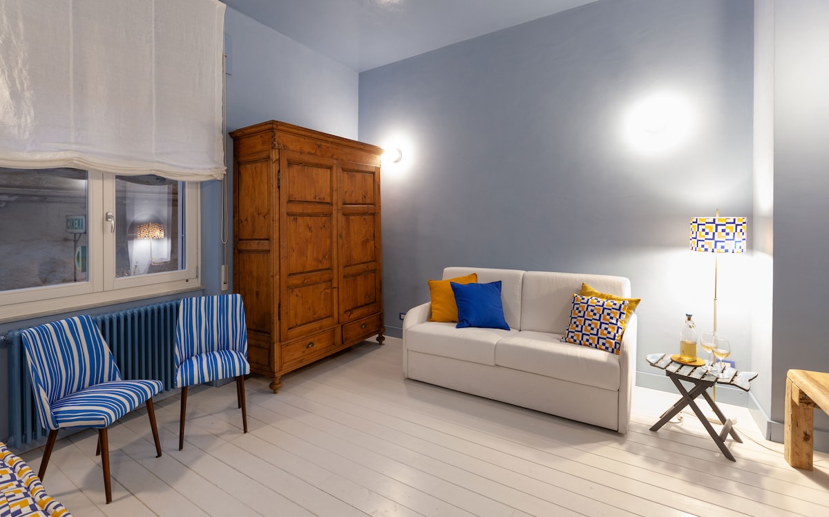 "The Blue House" is the ideal place to be between Golfo dei Poeti and 5 Terre. Liguria is a fascinating region, reach in history, with a beautiful coastline, natural parks, excellent gastronomy and wine. The "blue House" is located in the pedestrian centre of La Spezia, only 15 minutes by foot from the central train station, and 5 from the ferry terminal to Portovenere, 5 Terre and Plamaria island. With only 2 minutes by foot you can also reach the bus to Lerici, Sarzana, Portovenere.