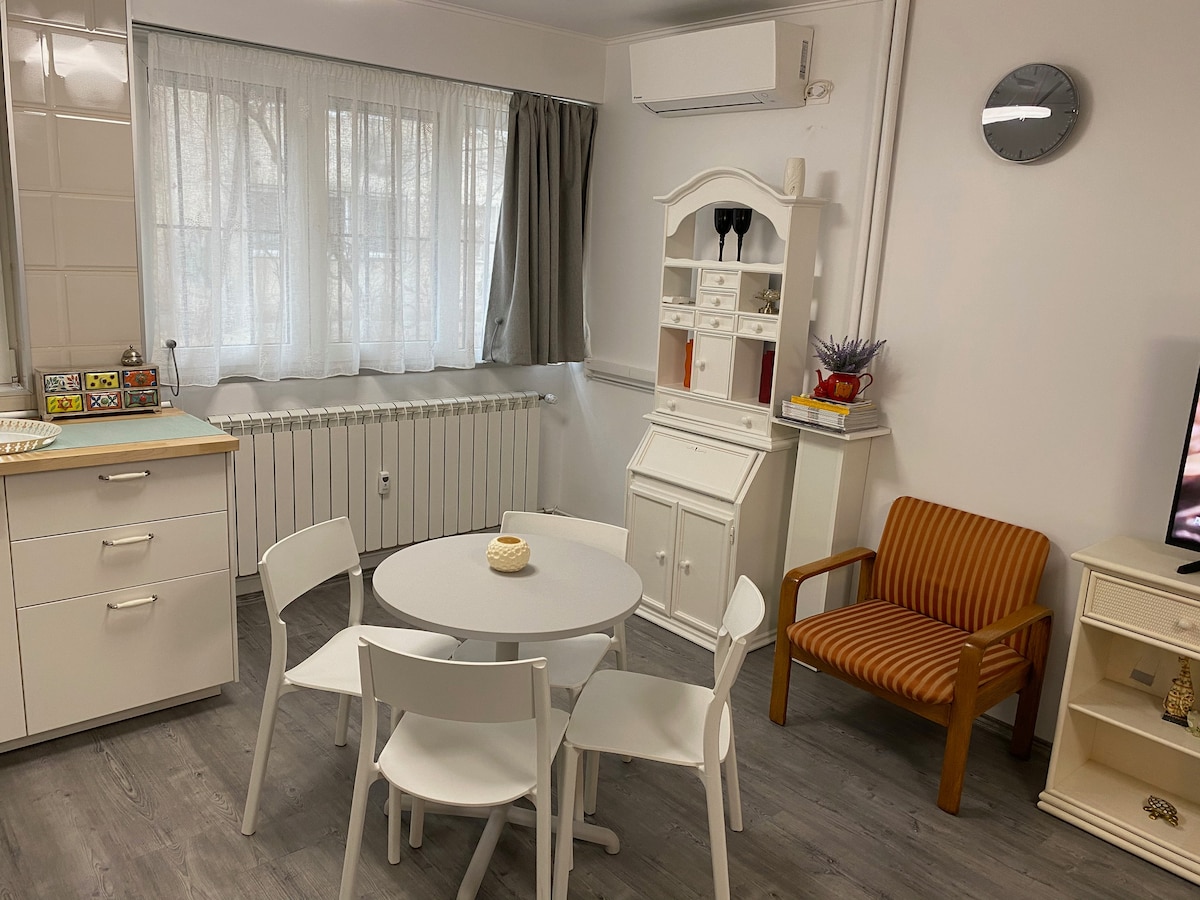 Spacious luxury 40 sqm studio in the heart of Bucharest, just steps from Old Town Bucharest. Recently renovated, the apartment features elegant decor, a comfortable queen-size bed (180×200 cm), a stylish sofa, a cozy balcony, a large fully equipped kitchen and a spacious bathroom with rain shower. Hosted by a Superhost with over 7 years of experience. Metro right next to the building. Coffee shop, cake shop, mini markets, fast food, ATM and currency exchange on the ground floor.