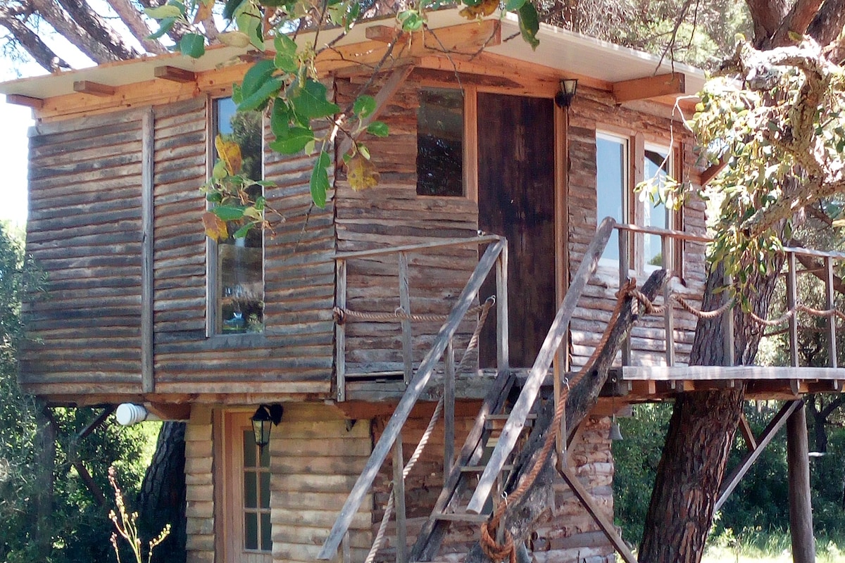 带户外座椅的树屋