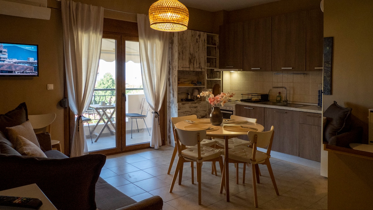Elegant Retreat in the village of Afitos Nestled in the picturesque village of Afitos, this stylish two-bedroom apartment offers a blend of comfort, elegance, and authentic Greek charm. Designed for those who appreciate tranquility and refined simplicity.