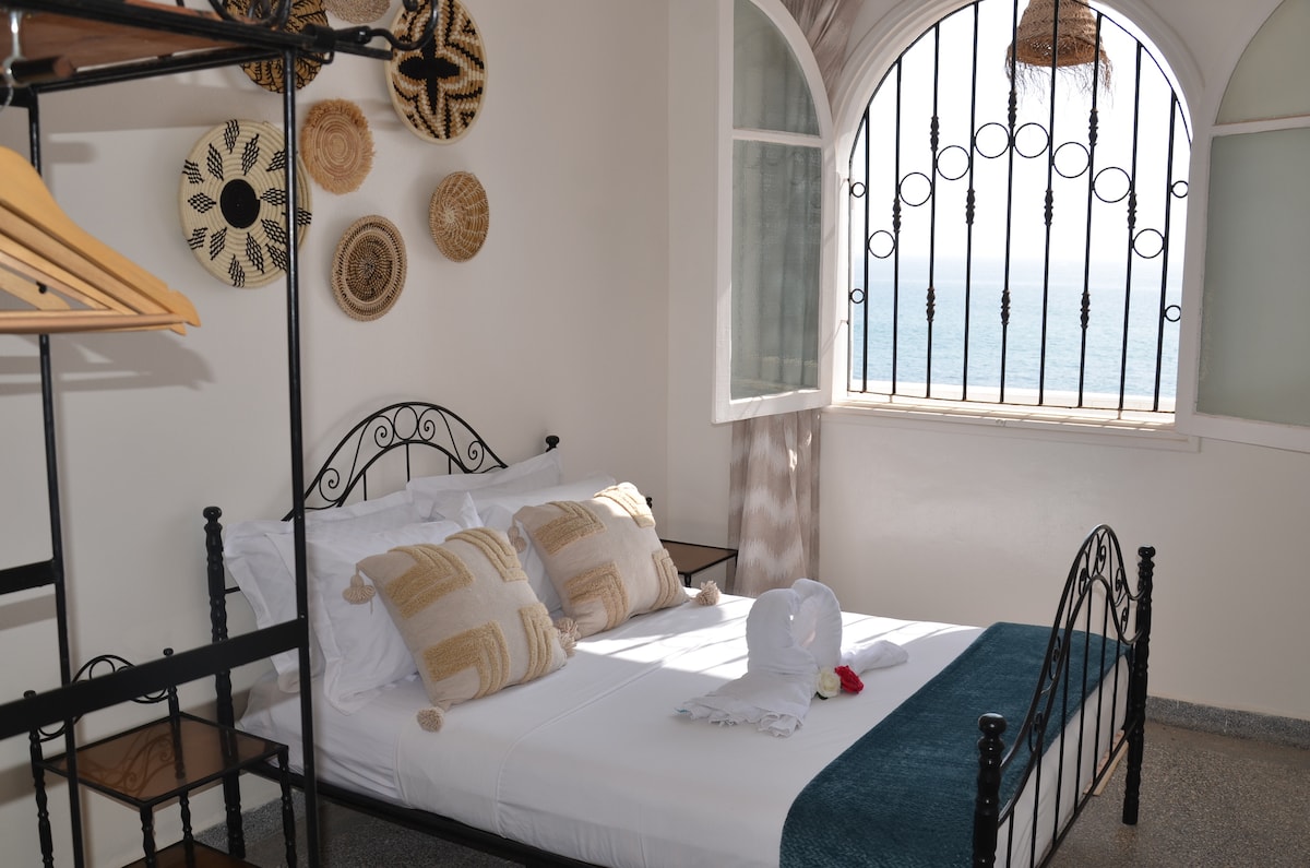 Découvrez le charme authentique de notre suite berbère, un espace ouvert conçu pour votre confort et votre détente. Elle comprend : • Un lit double pour des nuits paisibles, • Toilettes et douche privées pour votre intimité, • Une petite cuisine avec kitchenette • Un coin détente pour savourer un thé ou un café . Le tout agrémenté d’une vue spectaculaire sur la mer, parfaite pour des moments de relaxation et des souvenirs . Laissez-vous séduire par l’ambiance magique de cette suite berbère
