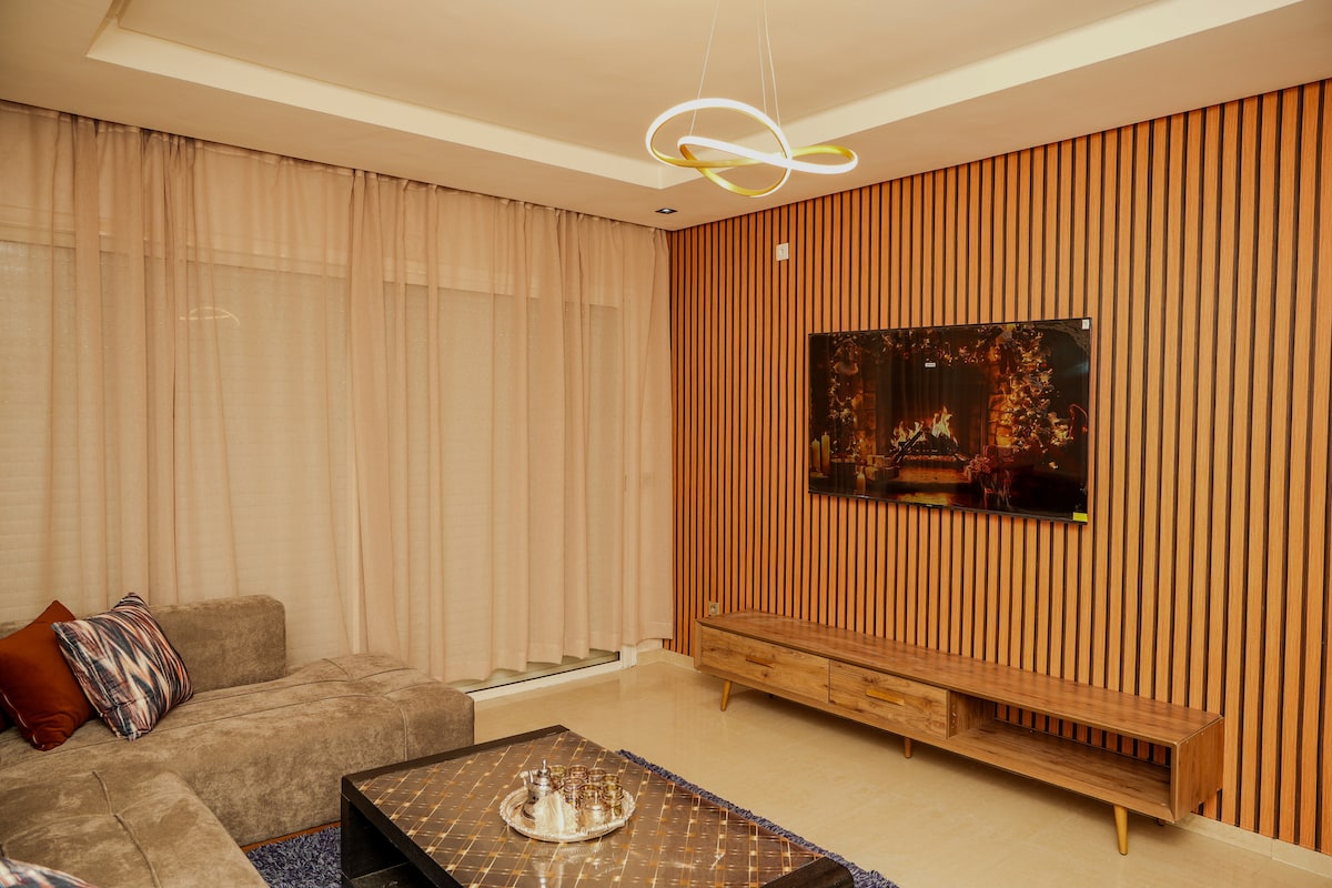 Sunny 1st-floor apartment in central Agadir, steps from cafés, shops, and a 10-minute walk to the beach. Enjoy a cozy living area with a 65'' TV, fast WiFi, and a full kitchen. We help you plan unforgettable experiences: camel rides, Agadir Sahara sunset & sandboarding, Paradise Valley trips, surf, skate, quad, jet ski, fishing & more. Airport transfer service available. ⚠️ Only registered guests are allowed, no outside visitors.