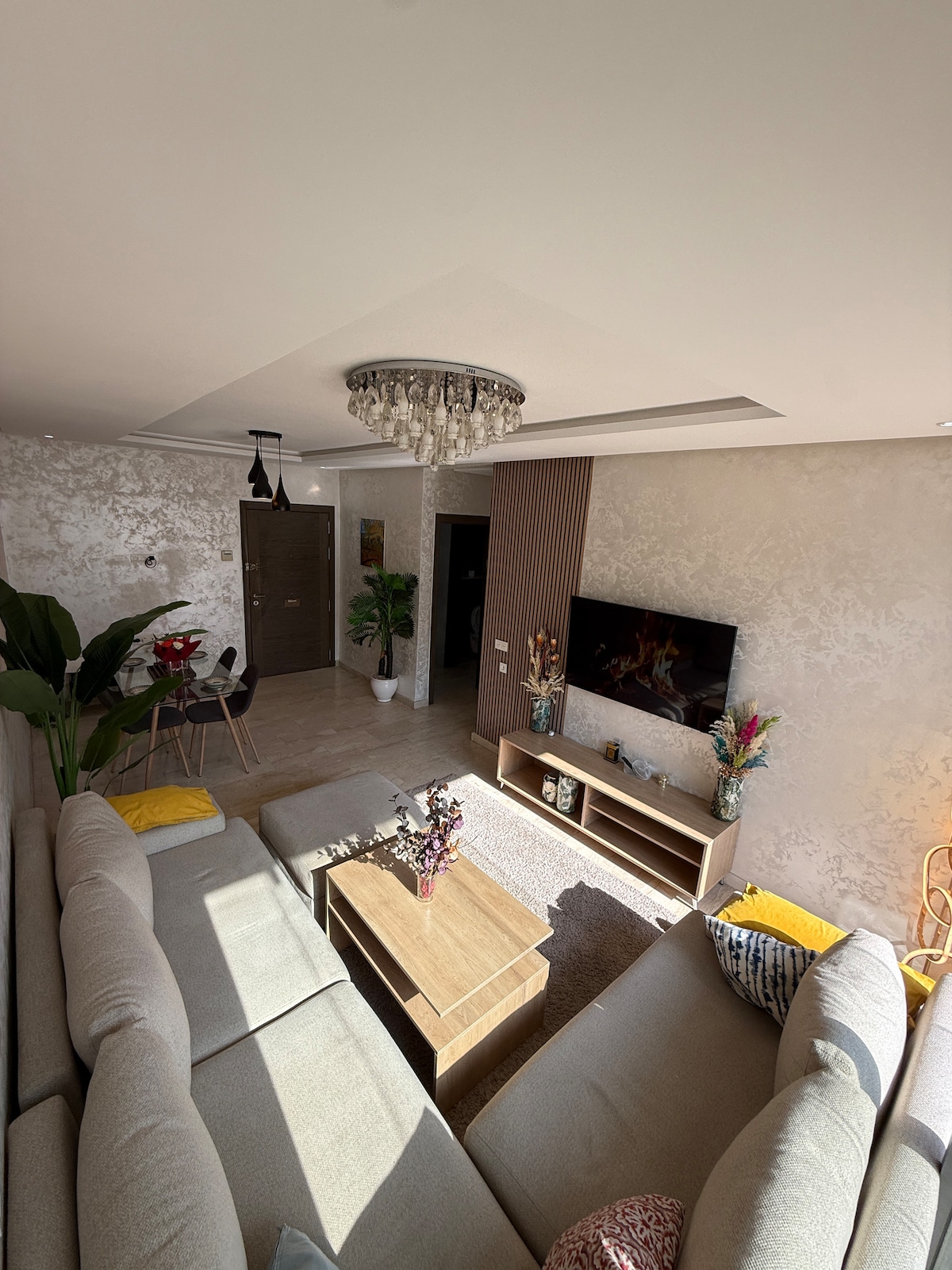 Offrez-vous un séjour reposant dans ce bel appartement climatisé, idéalement situé dans un quartier calme et sécurisé, à moins de 10 minutes de la plage. Vous serez à proximité immédiate des commerces : Marjane et Carrefour, de nombreux restaurants, salles de sport, spa et hammam également disponibles à quelques minute.Situé au 4ᵉ étage avec ascenseur, l’appartement offre une vue dégagée et un grand confort. Profitez d’un espace moderne avec tout le nécessaire pour un séjour agréable wifi fibre