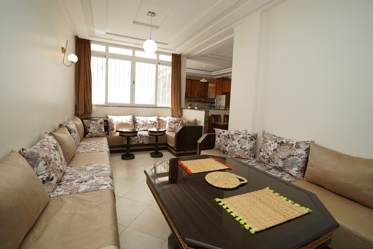 Welcome to our new modern 2-bedroom condo located in a calm and secure area of Agadir. Thoughtfully designed for relaxation and convenience. 🚨 Please read the apartment rules before booking.