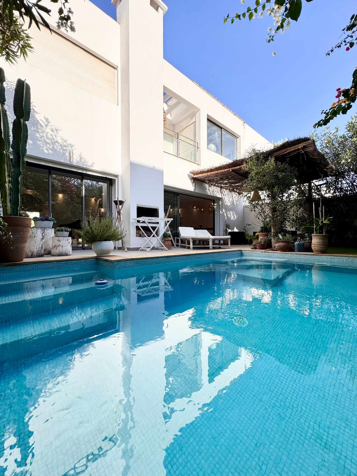 Détendez-vous dans cette villa calme et élégante dans une zone touristique à proximité de la mer (5 min à pied) , à coté des Hôtels 5 étoiles tel que Sofitel, Robinson, RIU Palace... La villa contient à l étage une grande suite parental dressing et salle de bain, 2 chambres, Bibliothèque, Salle de bain Au rez de chaussée : 3 Salons, une cuisine, jardin, une salle de bain au sous sol : SPA(une piscine couverte chauffée avec jacuzzi intégrée, Sauna, Hammam, des machines de sports, terrasse)