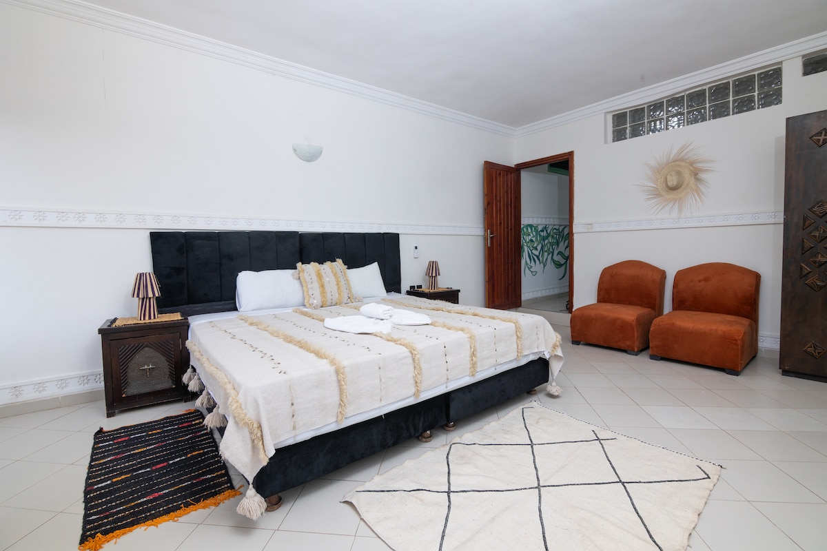 Wavy Days 2 – Your Home on Morocco’s Surf Coast. It’s located in upper Tamraght, a charming Berber and surf village on Morocco’s Atlantic coast, perfectly situated between Aourir and Taghazout. Within a 10–25 minute walk, you’ll find local shops, cafés, restaurants, the beach, and a bus stop. Numerous world-class surf spots are just around the corner and easily accessible by car. Whether you’re a beginner, intermediate, or advanced surfer, there are waves here for every level.