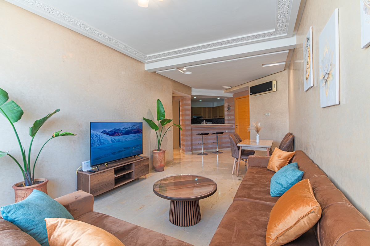 ✨ Newly renovated 3BR/2BA in Agadir’s exclusive gated Marina Complex. Perfect for families or friends seeking a peaceful, stylish stay. Spacious, central, and walkable — with full kitchen, AC in every room, Smart TV, and rain showers. 🚫 Not suitable for groups of single men looking to party 📄 Moroccan couples must provide a valid marriage certificate.