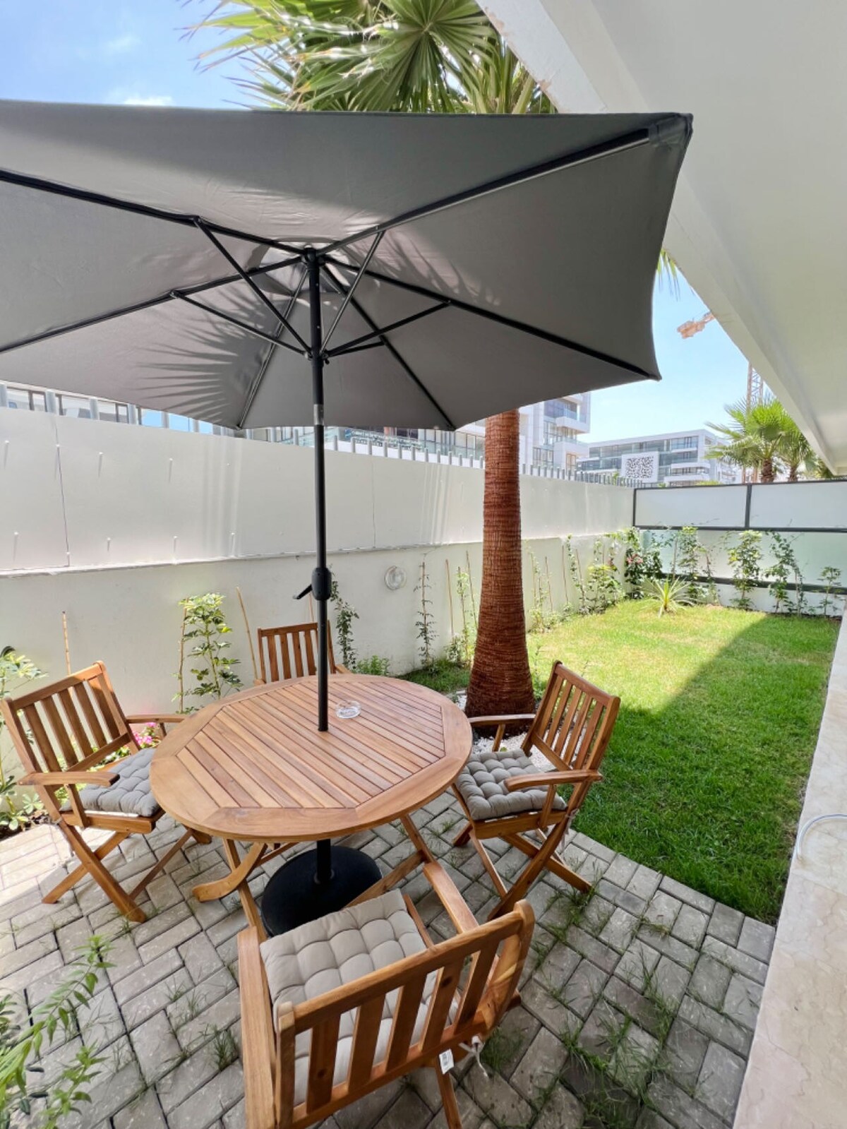 You can sit and dine in our huge terrace or enjoy one of our many swimming pools or gardens. This flat is in a super secured and closed residence; located in the touristic upcoming area of agadir, only ten minutes away from the beach and less than 5 minutes from coffeeshops, shops, hotels... In the residence, you access private and secured parking for free. In the flat, there is a huge living space with open kitchen, one parental suit and another room with two individual beds.
