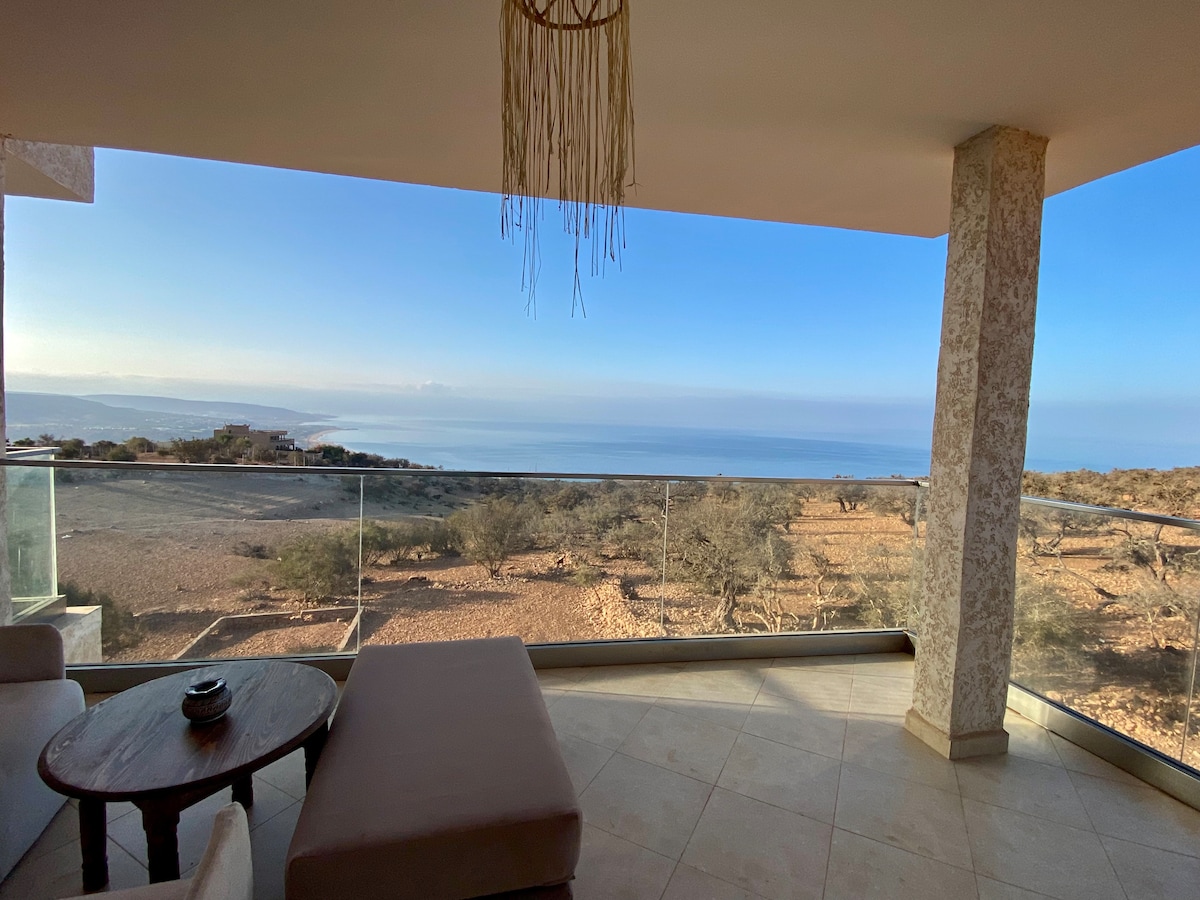 Nous sommes très ravis de vous offrir un appartement qui représente notre culture berbère avec un peu de modernité est une sensation de mille et une nuit Profitez d'un séjour inoubliable dans notre appartement très accueillante et notre superbe Terasse avec une excellente vu à l’océan spécialement sur le spot de surf banana point est au montagnes de Tamraght.