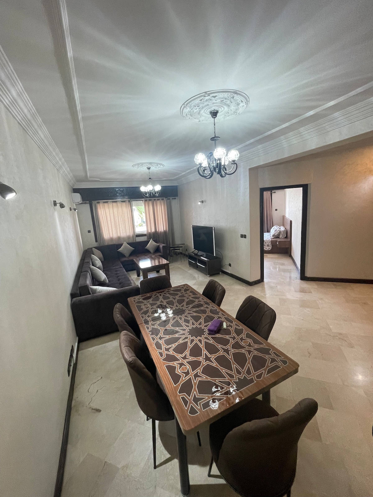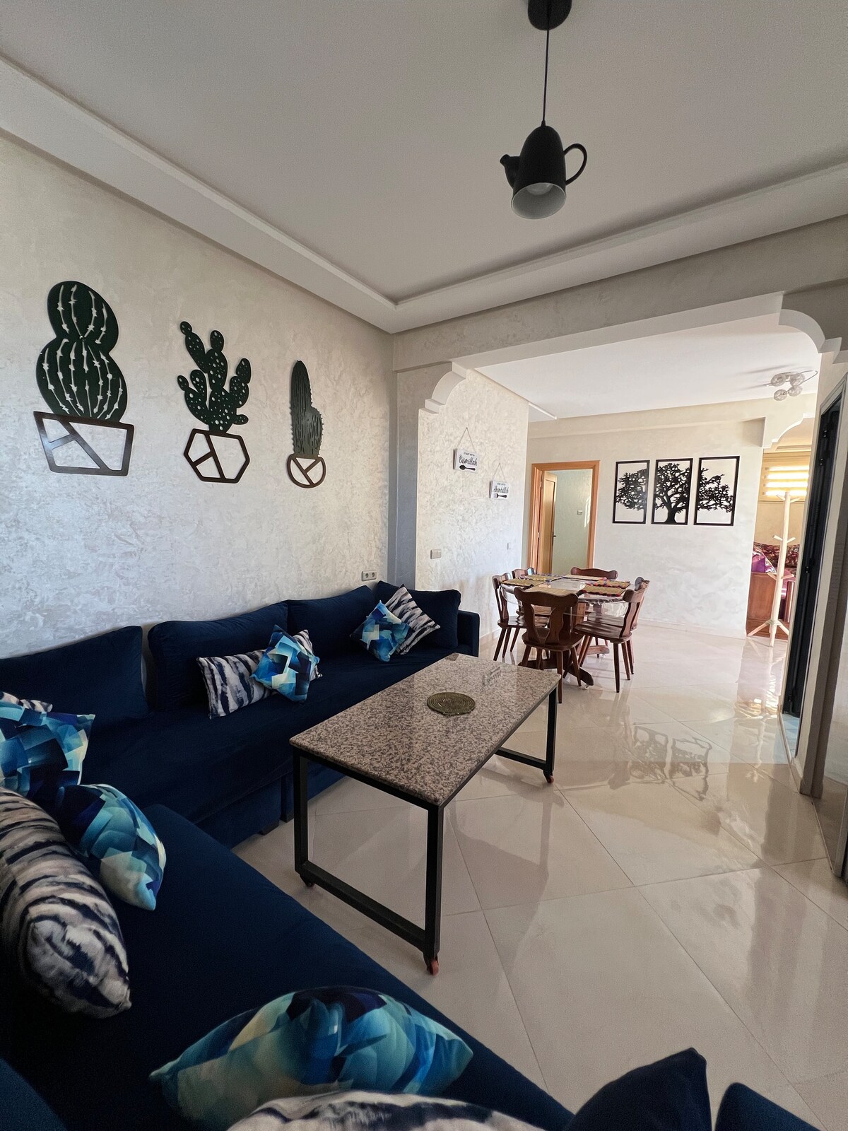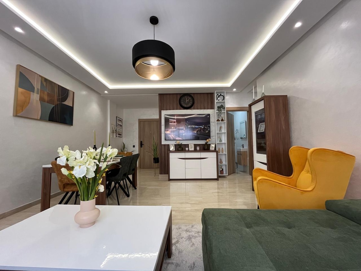 Discover comfort and luxury in this spacious apartment located in the heart of Agadir. It features two spacious bedrooms, a bright living room, and a stylish dining area, ideal for families or small groups. The apartment is close to Carrefour, McDonald’s, a variety of restaurants, and the famous Souk El Had for a unique shopping experience. The beautiful Agadir beach is just minutes away, making this apartment the perfect choice for your stay
