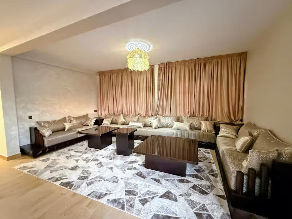 Ce logement refait à neuf affiche un style résolument Superbe maison style riad, décorée avec goût dans la pure tradition marocaine. Elle dispose de 3 suites avec salles de bain privées, ainsi qu’une douche supplémentaire au rez-de-chaussée. Située dans un quartier résidentiel familial au centre-ville, à seulement 3 km de la plage, elle allie authenticité, confort et emplacement idéal pour un séjour inoubliable. unique. La maison peut accueillir 6 personnes confortablement !