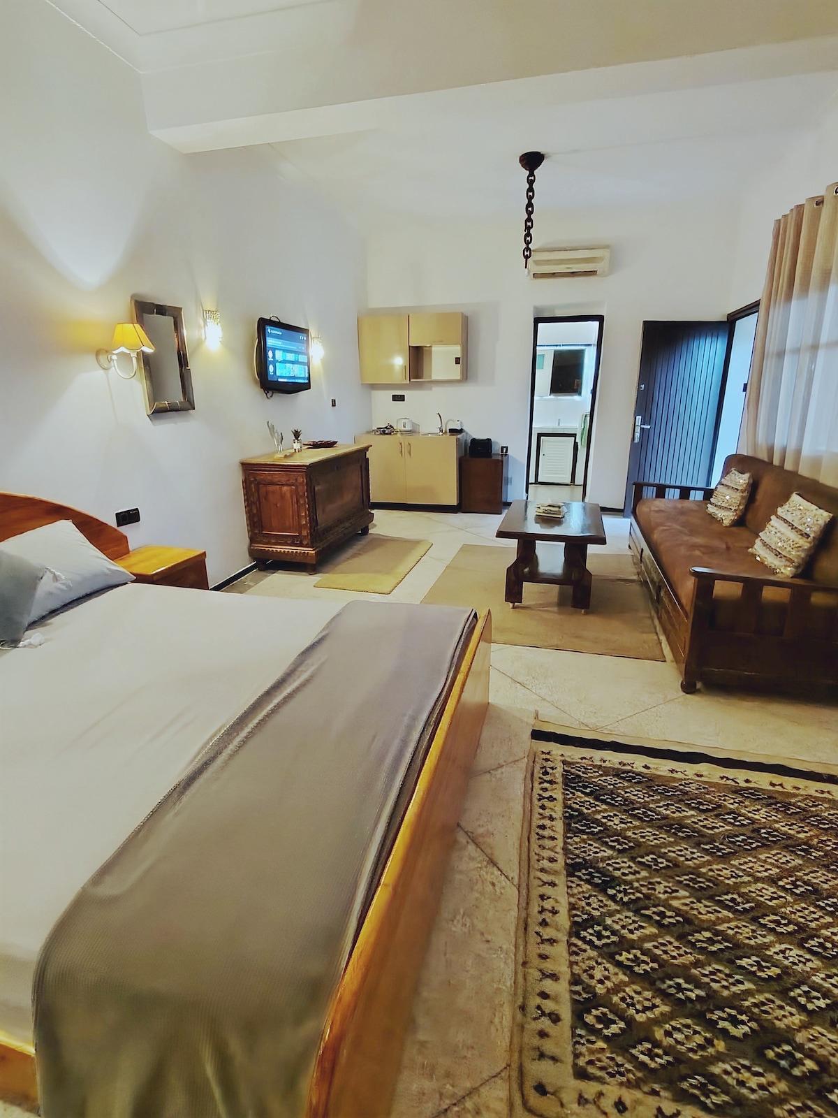 Découvrez le charme authentique de notre suite berbère, un espace ouvert conçu pour votre confort et votre détente. Elle comprend : • Un lit double pour des nuits paisibles, • Toilettes et douche privées pour votre intimité, • Une petite cuisine avec kitchenette • Un coin détente pour savourer un thé ou un café . Le tout agrémenté d’une vue spectaculaire sur la mer, parfaite pour des moments de relaxation et des souvenirs . Laissez-vous séduire par l’ambiance magique de cette suite berbère